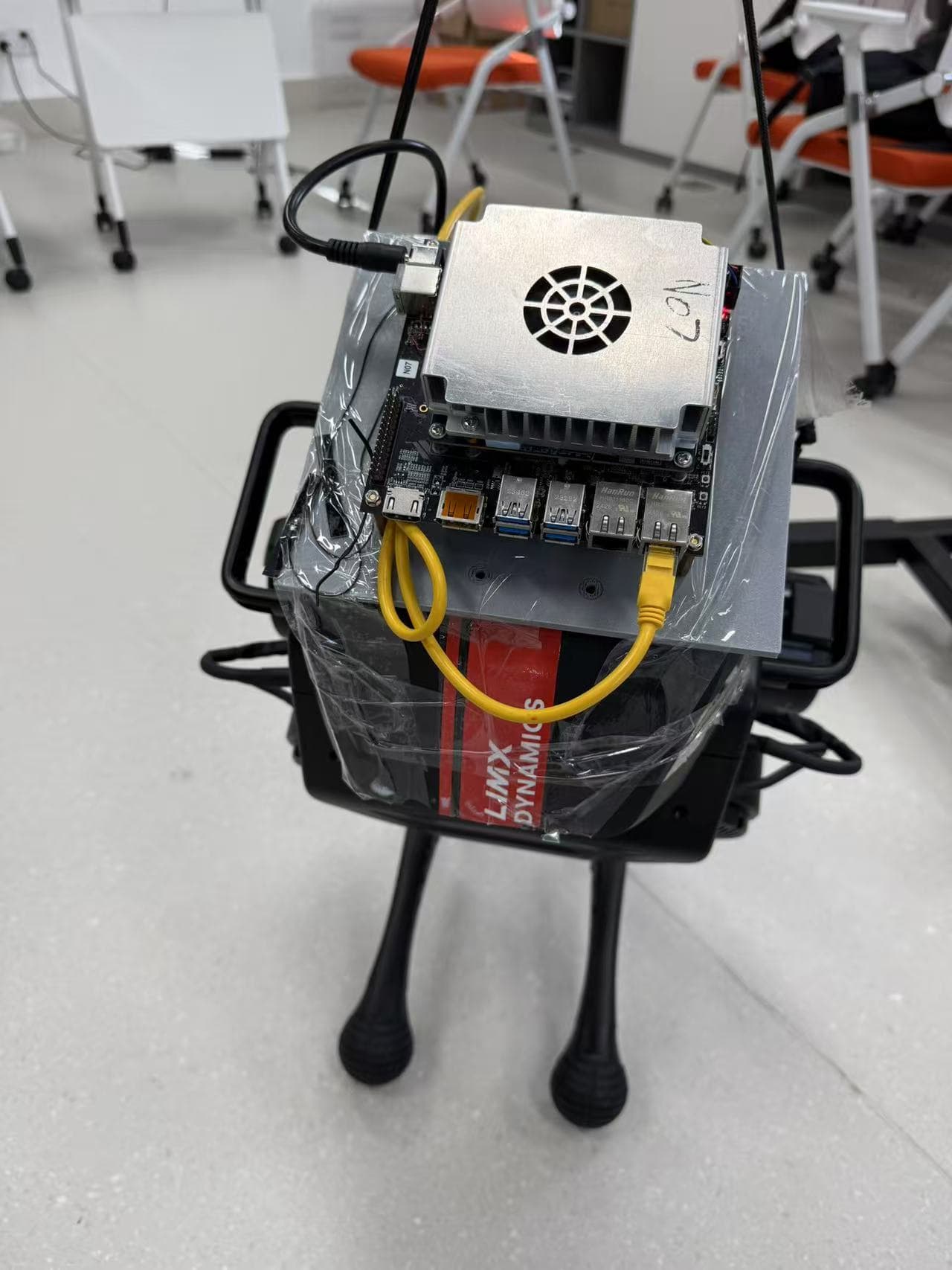 Attach the 3D-printed mount to the TRON-1 head using nano-tape (or duct tape).