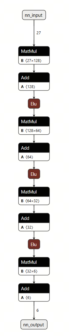 Inspection of the architecture shows that the model is composed of linear layers with ELU activations.
